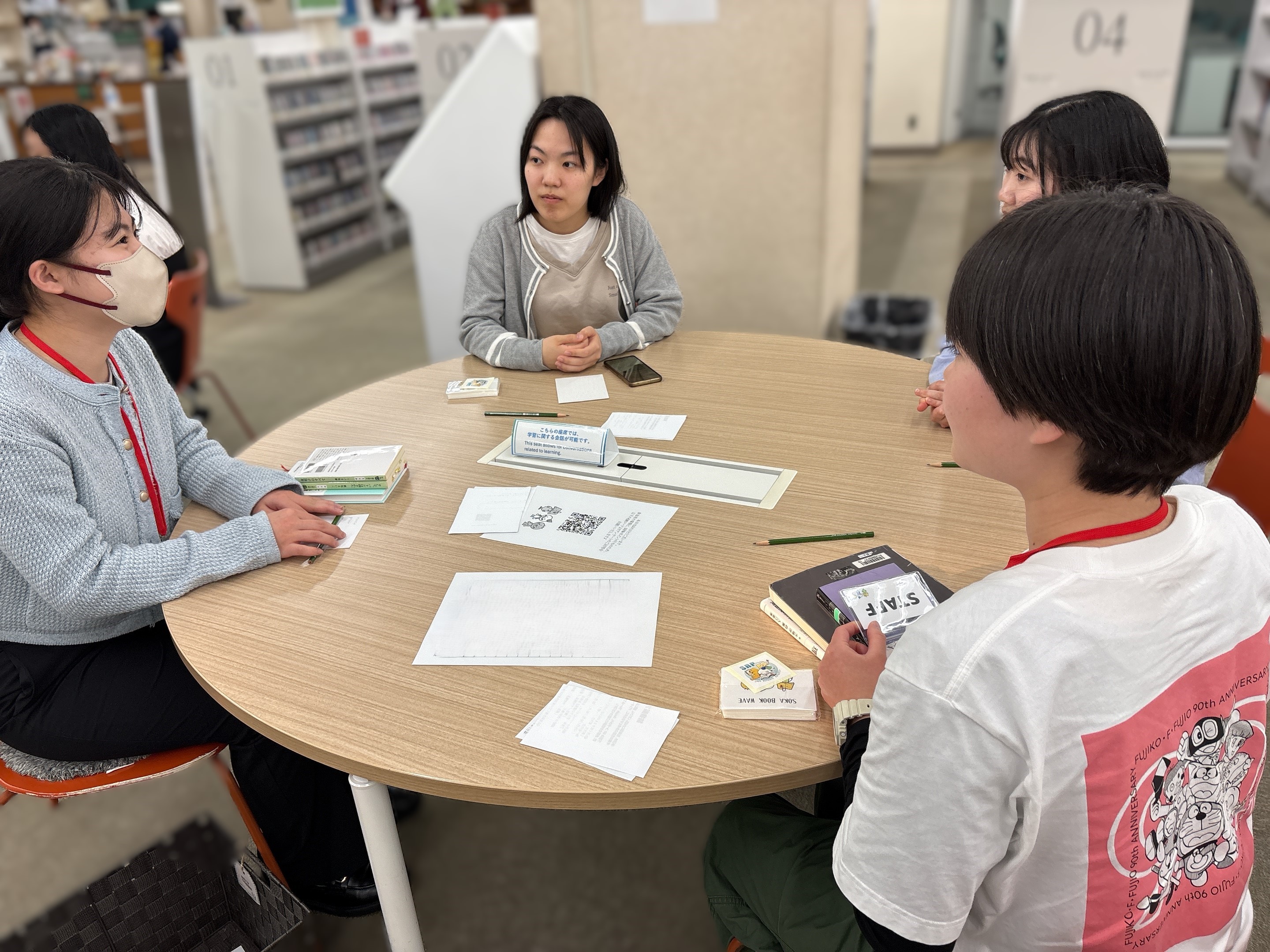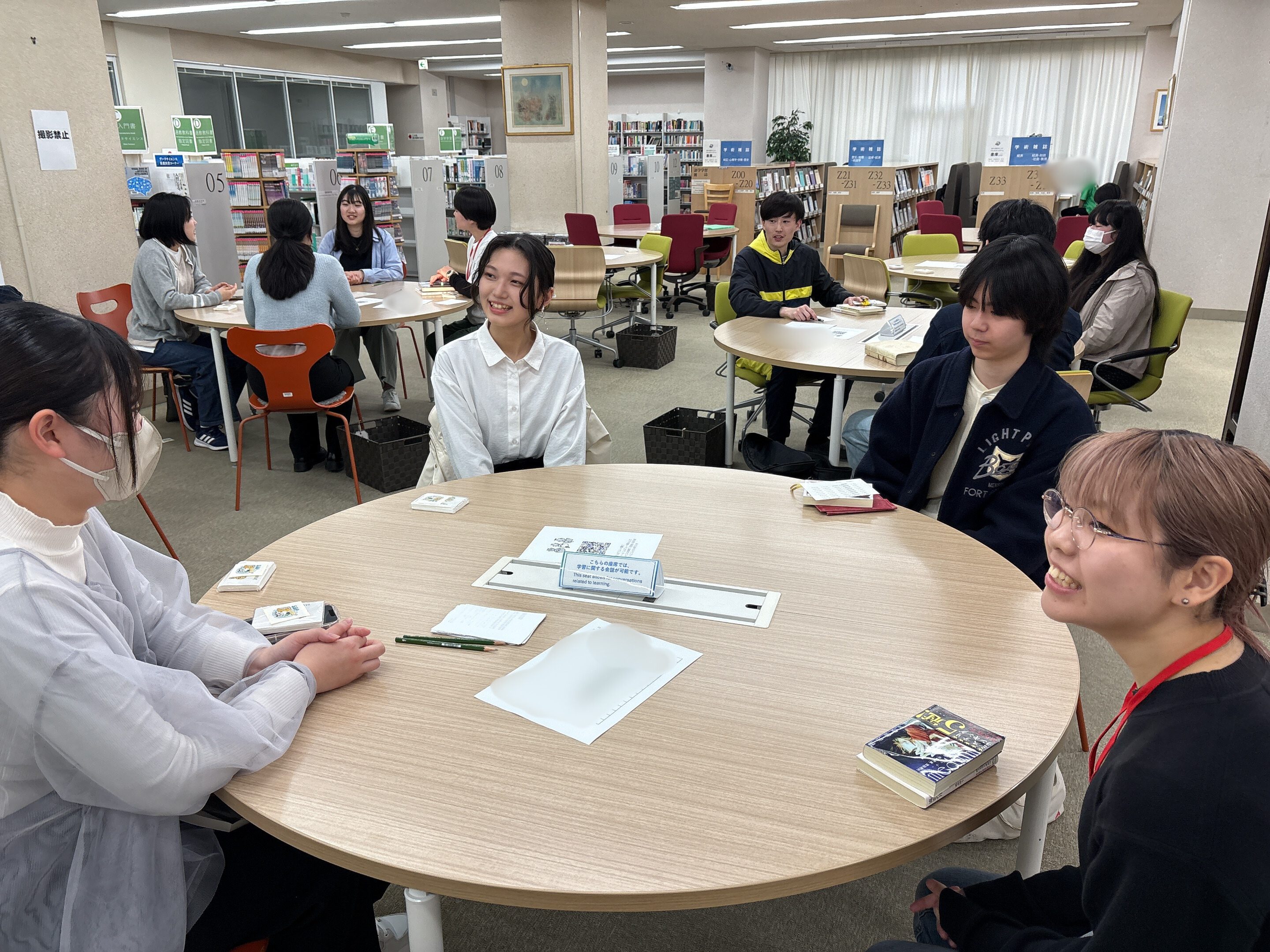 SBW4月18日(金)、Soka Reading Project(SRP)主催のイベント【推し本を語ろう会】を開催しました。当日は参加者が小グループに分かれて、自分のおすすめ本を持ち寄り、それぞれ語り合いました。グループトークの後は、各テーブルで話した内容を全体で共有しました。