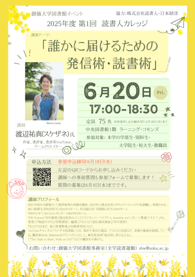 当日、参加した学部生・短大生・別科生には、Soka Book Waveポイントを10ポイント付与します。
