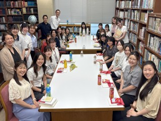 今回は短大開学40周年を記念し、創立者による短大特別文化講座「キュリー夫人を語る」(2008年2月)をテーマに、創価大学附属図書館 伊藤貴雄館長をゲストにお迎えし、川島秀明香峯図書館館長、教職員、卒業生(創大編入生)も参加して、楽しく開催しました。