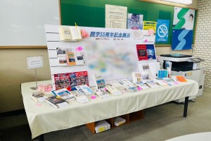本学は、1971年4月2日の創立から2026年に創立55周年を迎えます。そこで、大学にまつわる図書や大学史の書かれた図書・写真集、創大内にある記念碑やブロンズ像などに関連する図書や著名な来学者、講演者の図書を展示しています。