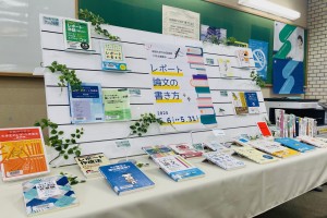 初めて書く論文やレポート。どうやって取り組めばよいか困っている方に、書き方に関する本や情報探索に関する本があることを知っていただけるように展示をしています。